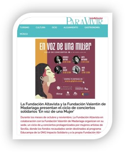 Desde hace varias ediciones, Fundación Altavista, con el apoyo imprescindible de Grupo Cycle, colabora activamente con el Icónica Sevilla Fest, uno de los eventos musicales más emblemáticos celebrados en la Plaza de España de Sevilla.Cada año, cerca de una veintena de personas con diversidad funcional o en situación de riesgo de exclusión forman parte del equipo de trabajo del festival. Su labor, centrada en tareas de limpieza, acondicionamiento y apoyo logístico, es esencial para el desarrollo del evento.