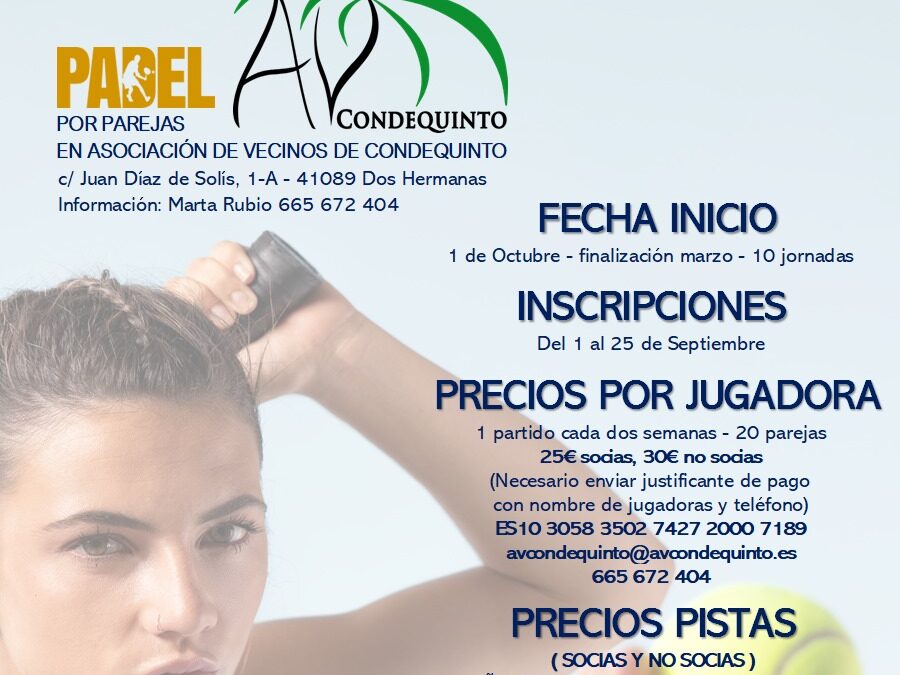 25 de septiembre de 2025Ya está preparada nuestra I LIGA SOLIDARIA DE PADEL FEMENINO que tendrá lugar entre los meses de Octubre de 2025 y Marzo de 2026 en la @av.condequinto a beneficio del programa AUXILIO 365 de la Hermandad del Rocio de Montequinto. Programa con el que semanalmente se reparte alimentos y artículos de primera necesidad a más de 50 familias desfavorecidas del distrito. Ya tenemos cartelería definitiva y hemos contado con la inestimable colaboración de empresas amigas de una enorme #responsabilidadsocial